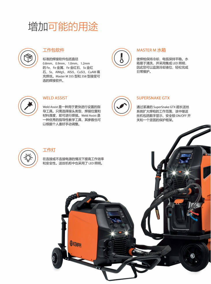Master M 在芬蘭設(shè)計和制造,是優(yōu)質(zhì)的便攜式MIG/MAG 電焊機系列,提升焊接性能和實用性。該系列具備數(shù)字電弧控制、快速設(shè)置技術(shù)和出色的功率重量比,確立了焊接質(zhì)量和工作效率的新標準。